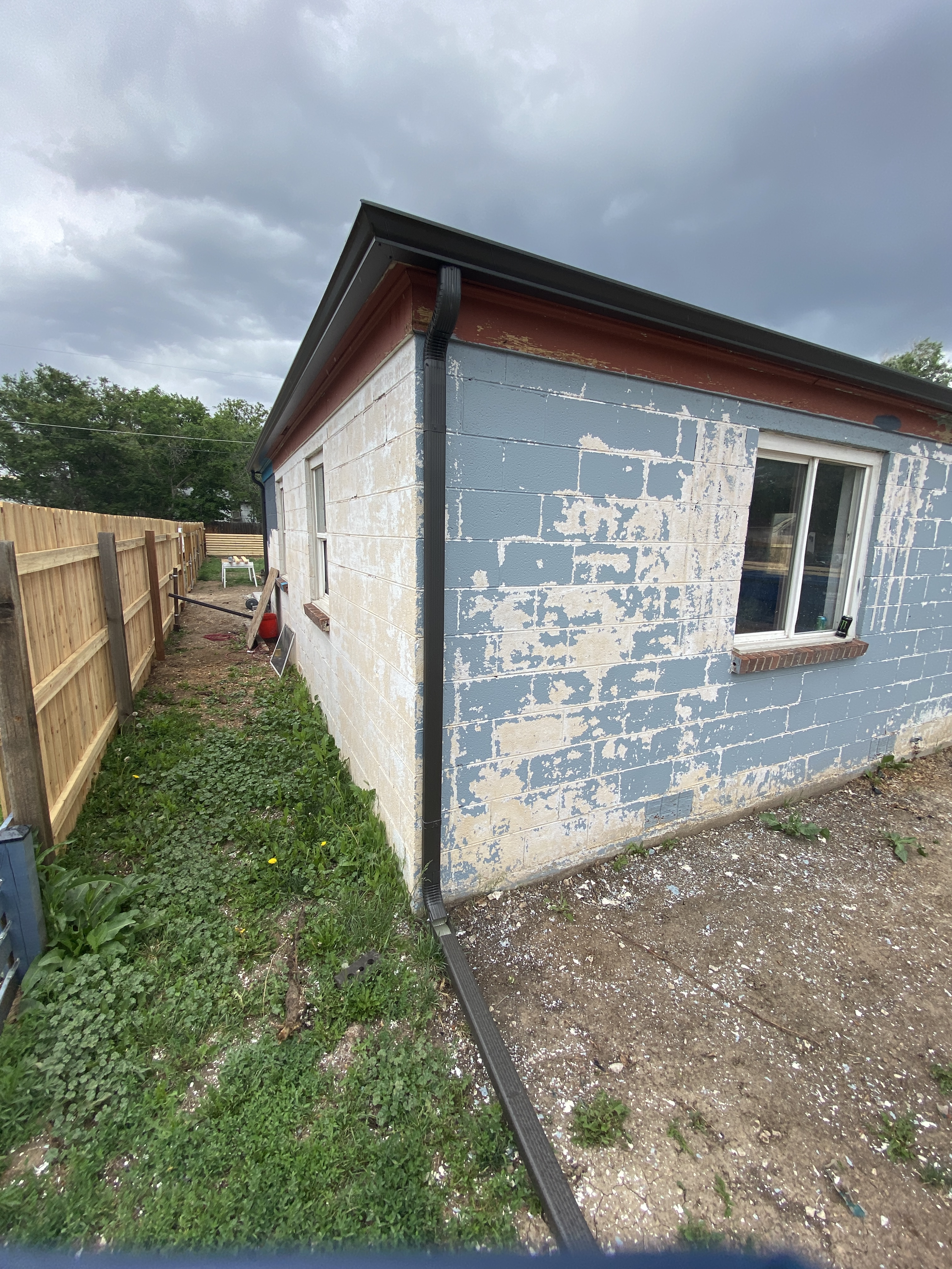 On the exterior of the house, we painted the exposed cinder block and added a splash of color.