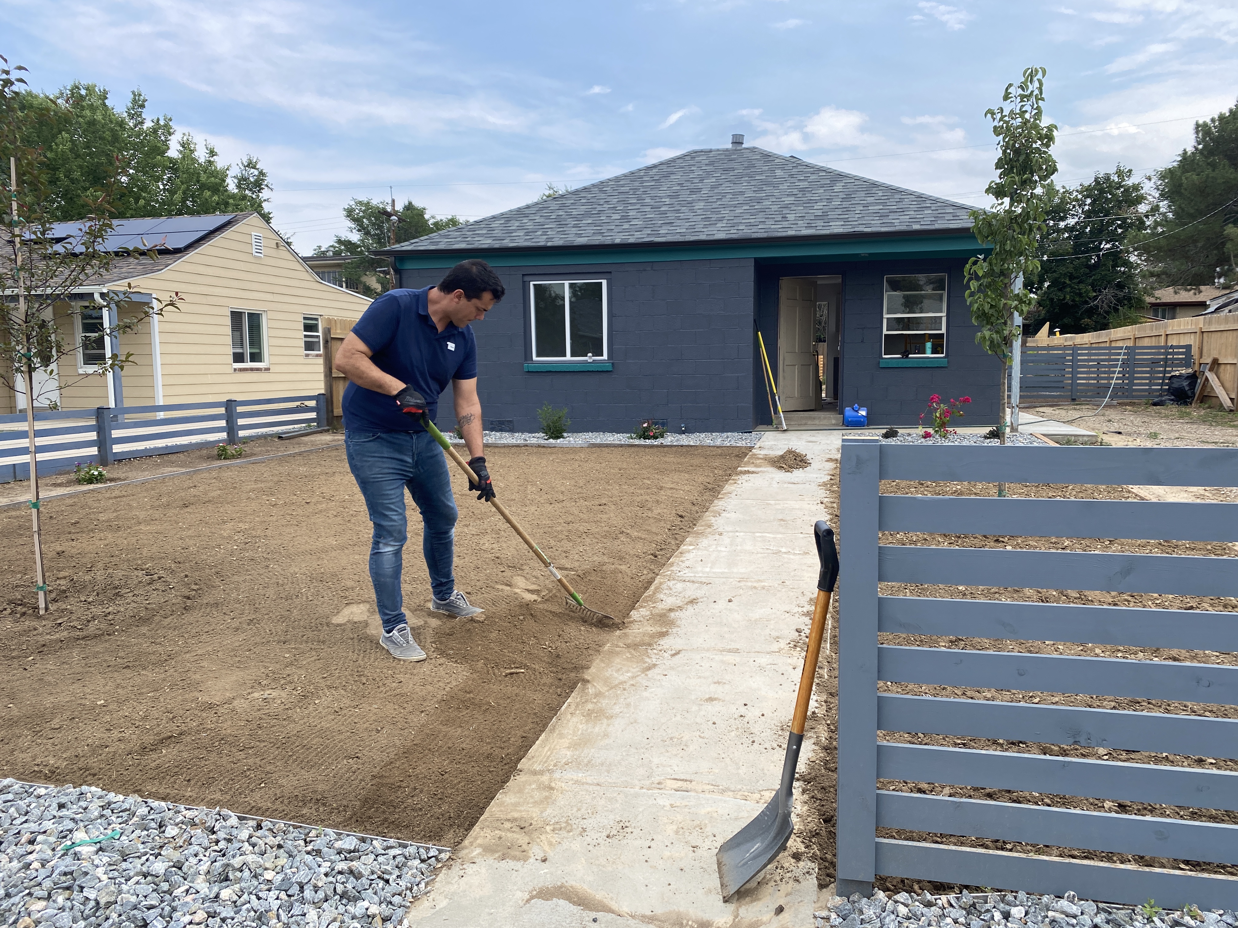 We planted young trees to replace the old one we removed, and landscaped the entire yard.