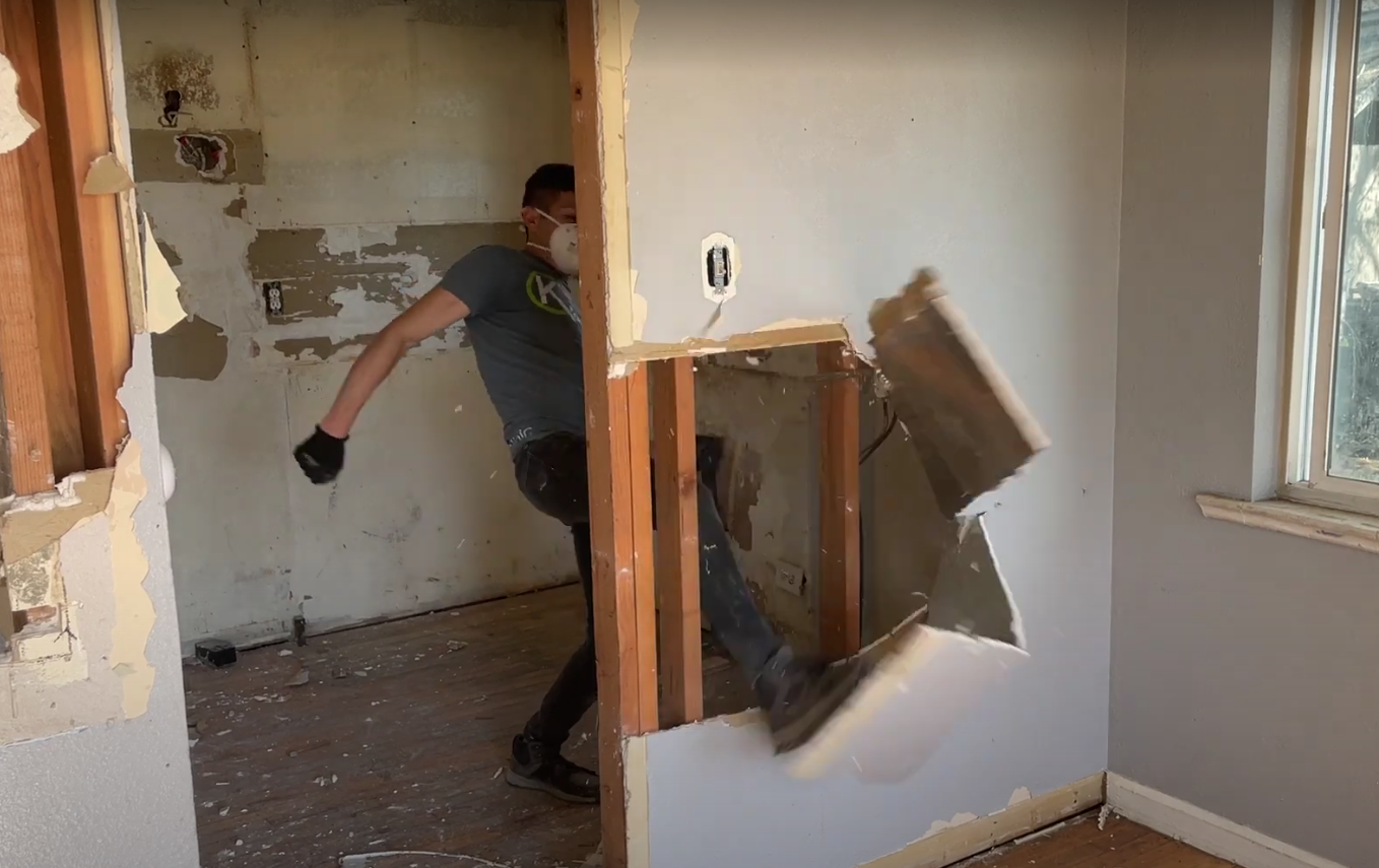 The old kitchen was completely removed, as well as the wall between the kitchen and living room to open up the space.
